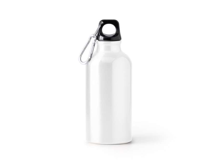 Бутылка из переработанного алюминия с карабином. Емкость 400 мл. Карабин для более удобной переноски бутылки, не рекомендуется для лазания.