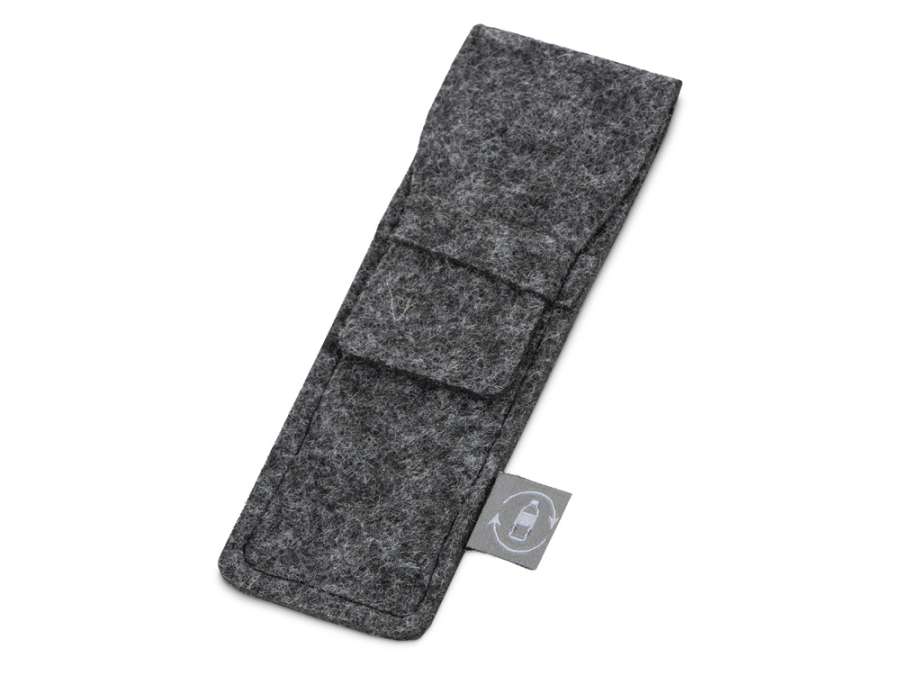 Футляр изготовлен из RPET-фетра. Этот материал хорошо держит форму и легко чистится, а ещё его использование позволяет заботиться об окружающей среде, поскольку он производится из переработанного пластика.