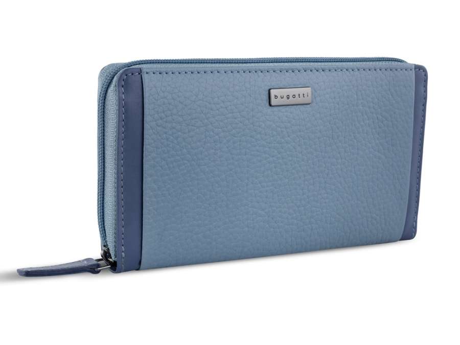 Кошелёк женский BUGATTI Sina, голубой, воловья кожа/полиэстер, 19х3х11 см