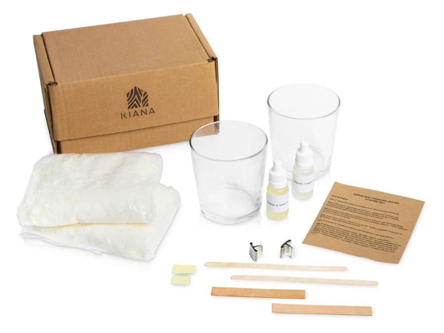 • Подробная инструкция в комплекте Комплектность: свечная масса, 2 стеклянных стакана, 2 фитиля деревянных, 2 держателя для фитиля, 2 вида отдушки, инструкция