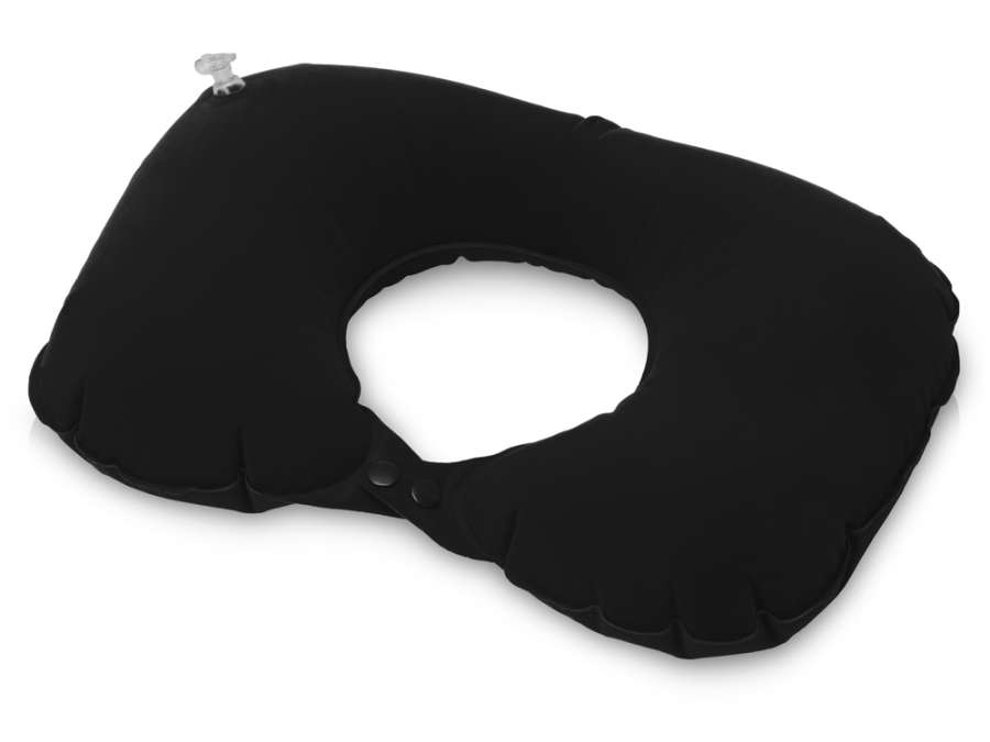 На обратной стороне от насоса-помпы находится клапан для сдувания воздуха из подушки. Двухуровневая фиксация кнопками позволит выбрать наиболее комфортное положение на шее. В комплекте идет чехол на завязках для хранения и удобной транспортировки.