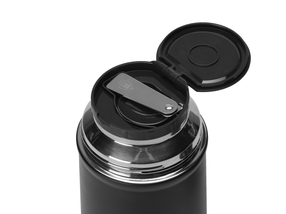 Обратите внимание на детали, кажущиеся не такими важными, но при этом облегчающие пользование термосом: силиконовые вставка на дне против скольжения и хлястик для удобной переноски и крепления внутри рюкзака, а также раскладывающуюся ложку из пищевой стали, которая прячется под крышкой термоса.
