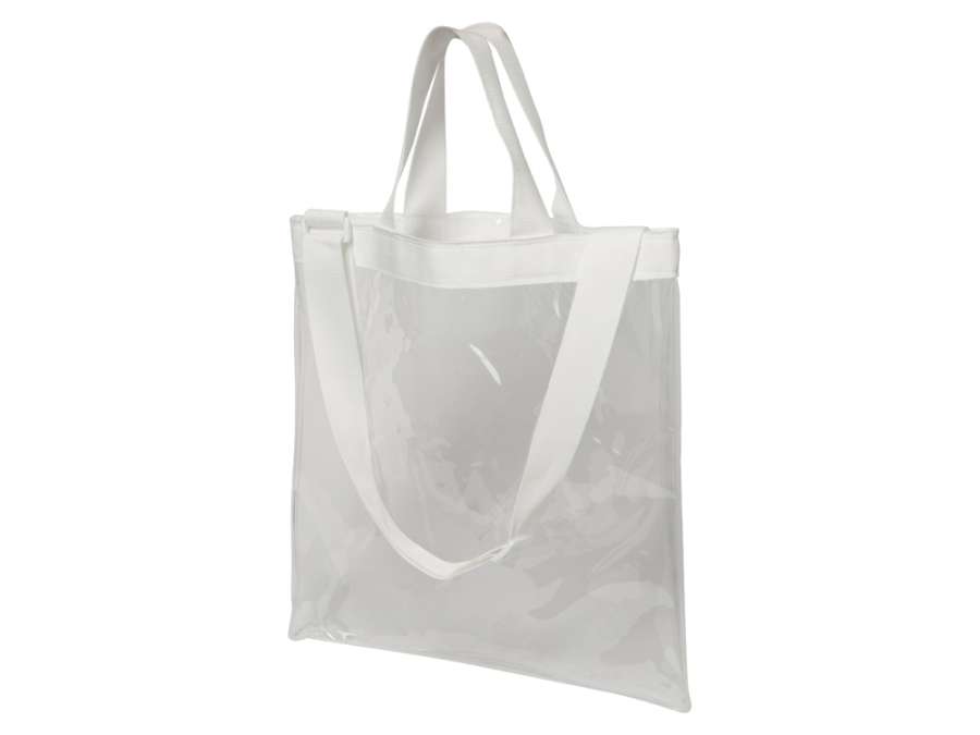 Легкая и вместительная сумка из прозрачного пластика с длинной лямкой из парусины, регулирующейcя по длине, незаменима для шоппинга или путешетсвий. Для большего удобства у сумки есть 2 короткие ручки.
