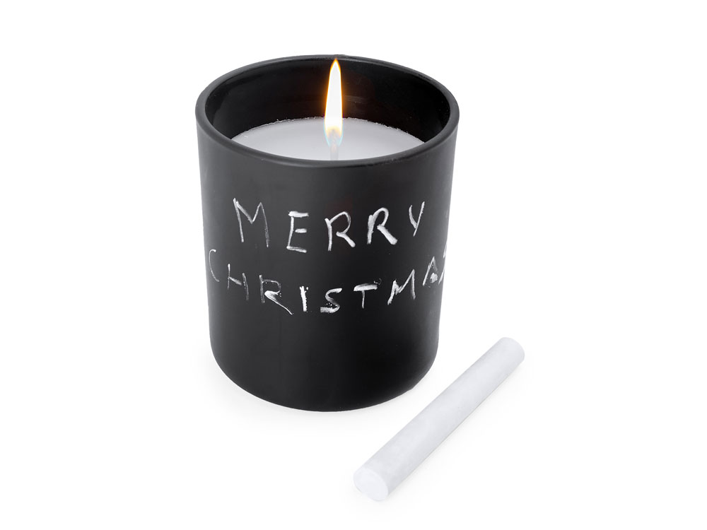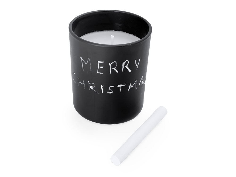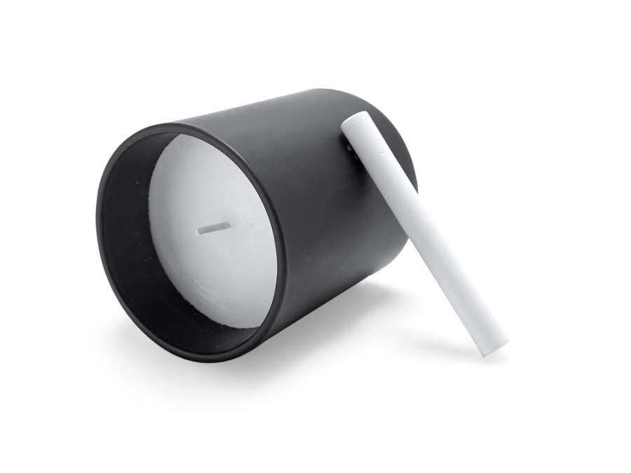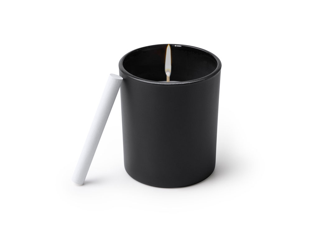 Ароматическая свеча в круглом черном керамическом подсвечнике. В комплект входит мел для рисования на подсвечнике. Белая свеча и фитиль. Аромат ванили.