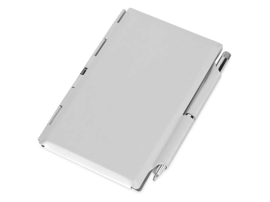 Визитница с блокнотом и шариковой ручкой, серебристый