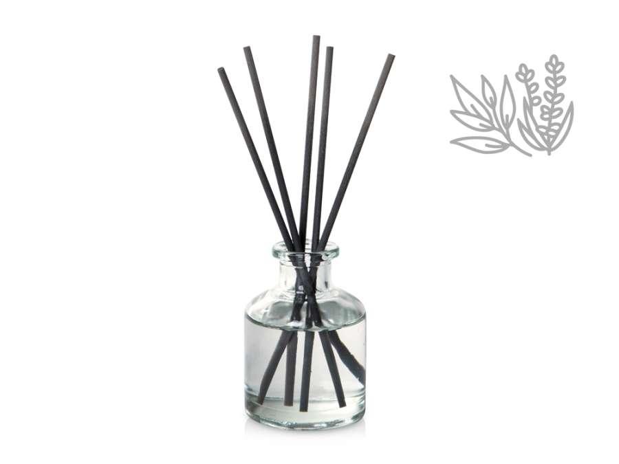 Объём диффузора 50 мл. Его будет достаточно для умеренного поддержания аромата в комнате до 15м2 в течение двух месяцев использования. Насыщенность аромата регулируется количеством используемых фибровых палочек.