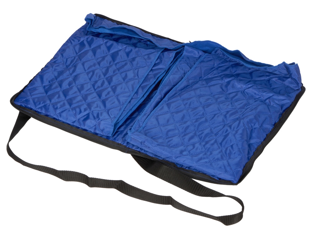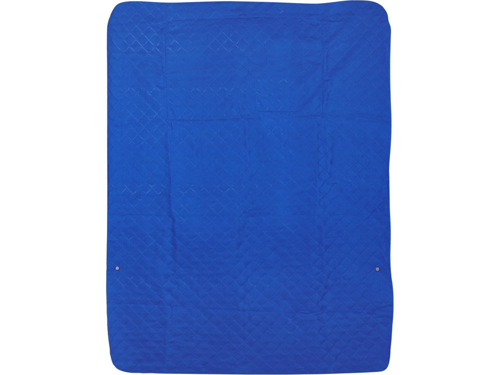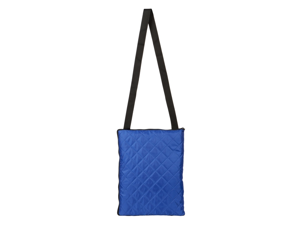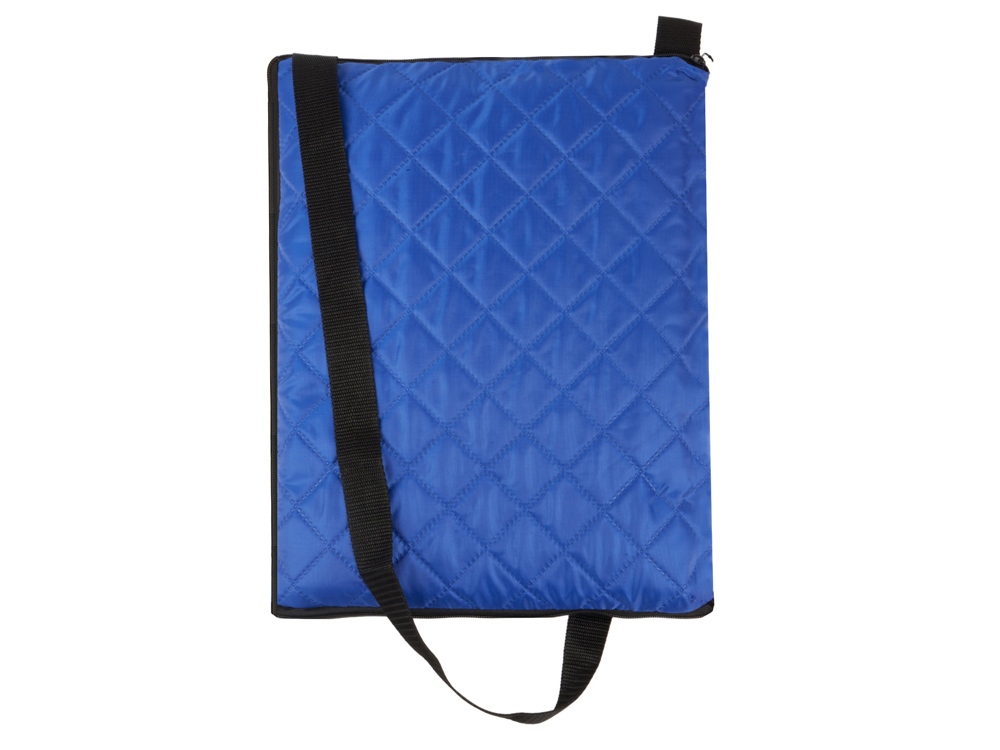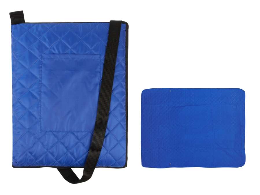 Двухсторонний плед с водоотталкивающим покрытием с одной стороны и мягким флисом с другой. Складывается в сумку на плечо и фиксируется с помощью молнии. В собранном виде имеет регулируемый по длине ремень для переноски и наружный карман для мелочей.