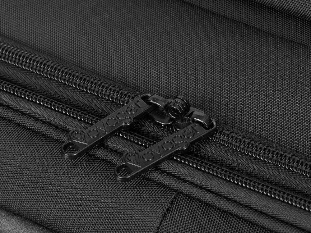 - большое отделение с карманами для ноутбука и планшета и пространством для одежды с фиксатором-пряжкой