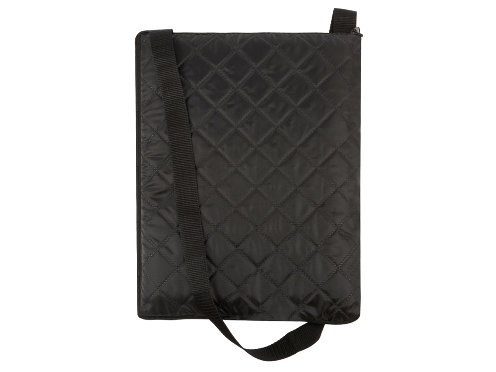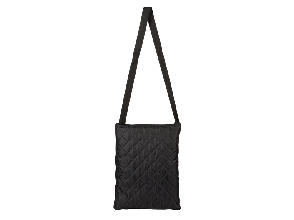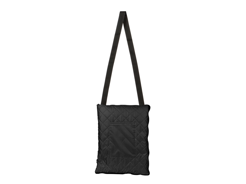 Двухсторонний плед с водоотталкивающим покрытием с одной стороны и мягким флисом с другой. Складывается в сумку на плечо и фиксируется с помощью молнии. В собранном виде имеет регулируемый по длине ремень для переноски и наружный карман для мелочей.