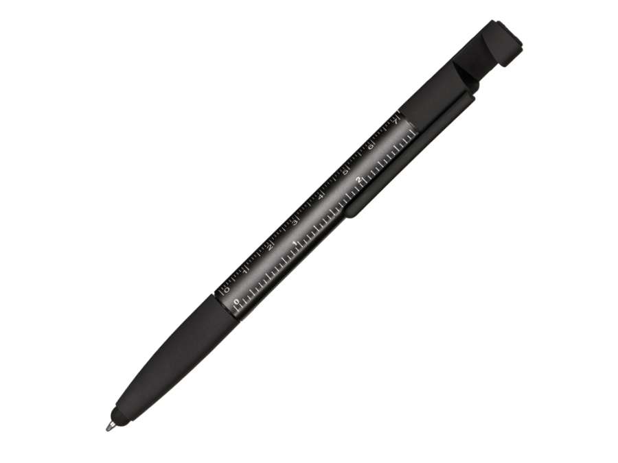Ручка-стилус металлическая шариковая многофункциональная (6 функций) Multy, черный глянцевый