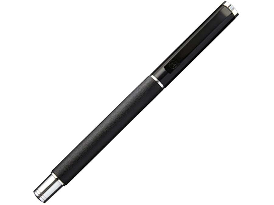 Стильная ручка роллер, с корпусом из искусственной кожи, матовым колпачком и хромированным наконечником станет отличным подарком даже для самых придирчивых клиентов. Черный стержень роллер. Упакована в подарочную коробку.