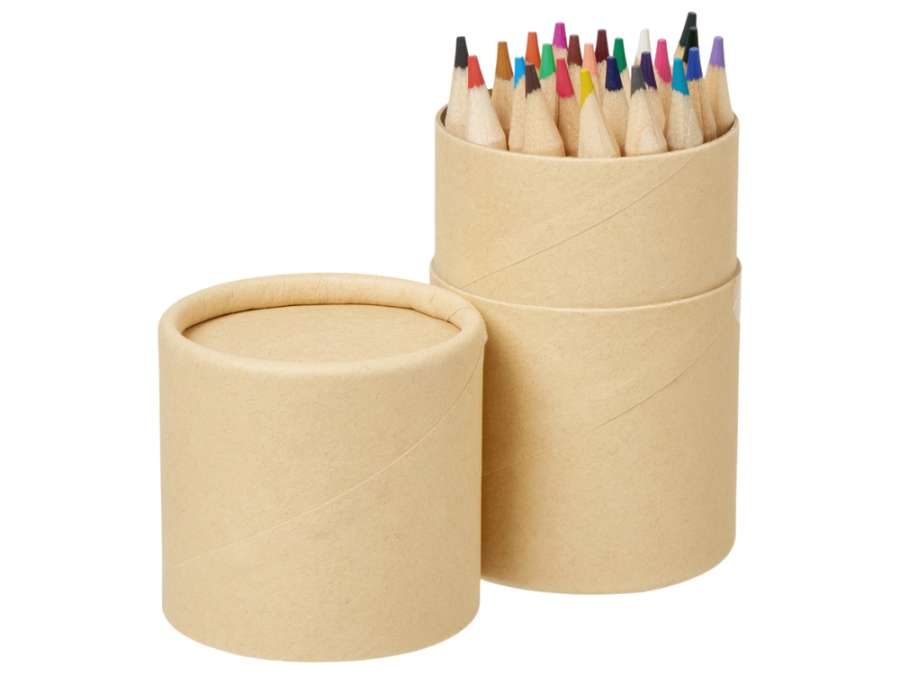 Набор из 24 цветных карандашей, ластика и точилки в круглом картонном футляре, который удобно использовать как карандашницу. Комплектность: цветные карандаши d0, 7 х 8, 8 см - 24 шт, ластик, точилка, картонная цилиндрическая коробк