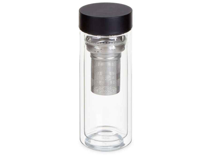 Термобутылка из жаростойкого боросиликатного стекла с углубленным составным ситечком. Позволяет сохранить температуру ваших любимых напитков течение 4-х часов. Корпус и стальная крышка идеально подходят под логотип, а общий минималистичный дизайн подчеркнет его. Объем 500мл.