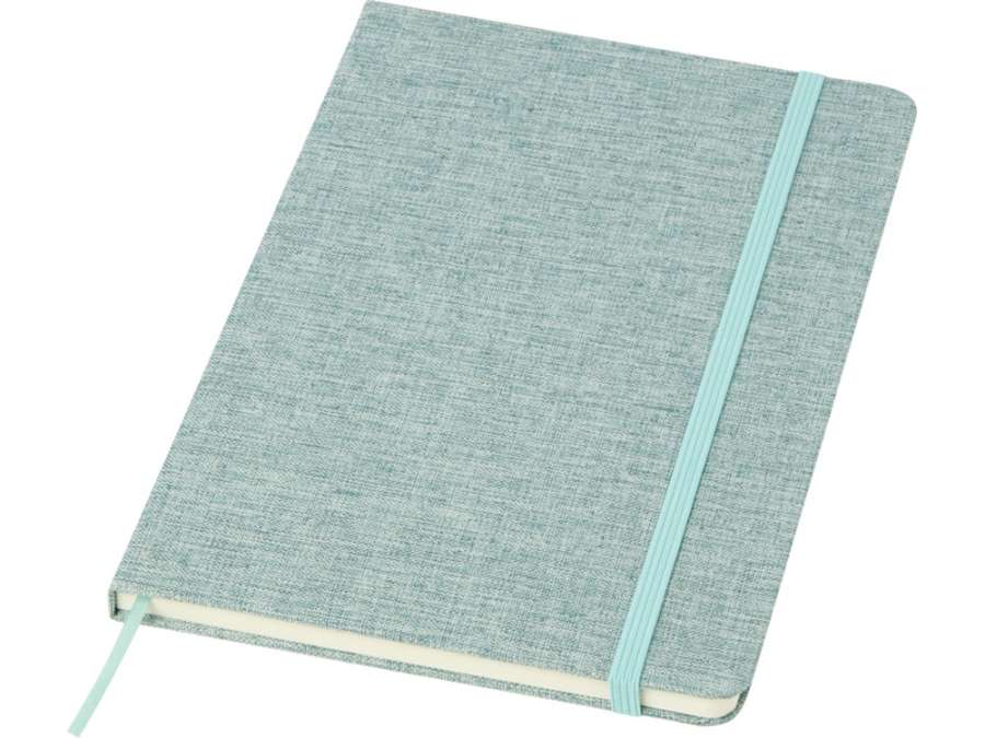 Блокнот формата А5 в твердой обложке из переработанного хлопка, 80 листов бумаги плотностью 70 г/м² в линейку. Блокнот имеет эластичную застежку, ленту и закругленные углы. FSC certified paper. FSC Mix Credit P7. 1 CU-COC-877277.