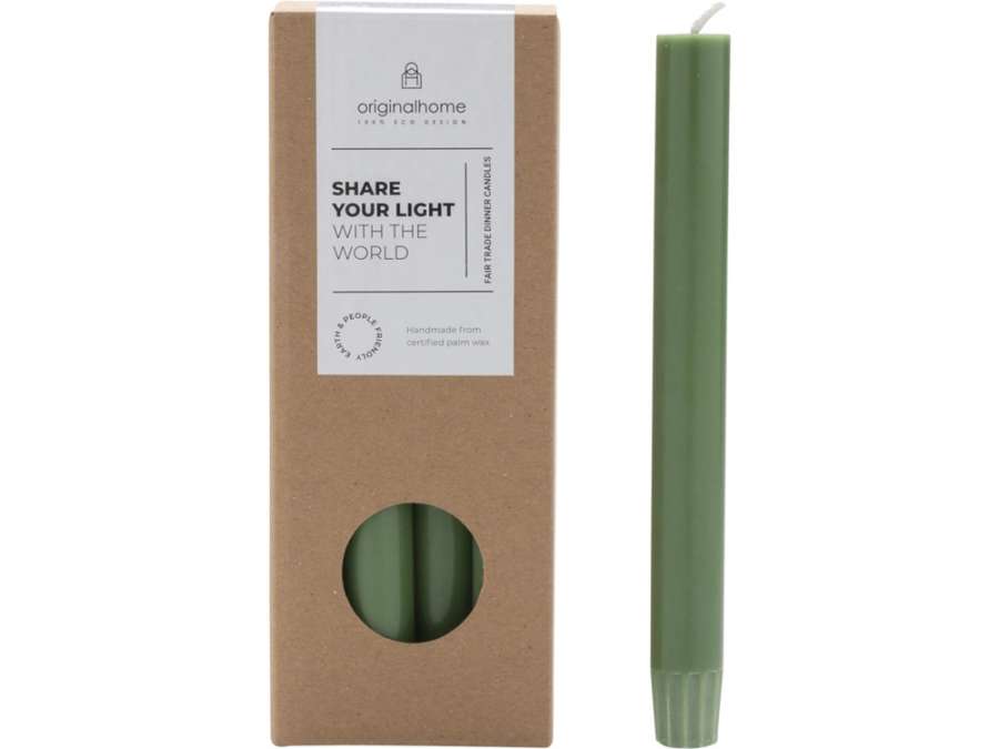 Столовая свеча от Originalhome на 100% натуральная и изготовлена вручную из сертифицированного пальмового воска. В комплект входят 10 свечей без запаха, упакованных в подарочную коробку. Каждая свеча горит примерно 7-8 часов. Palm kernel wax.