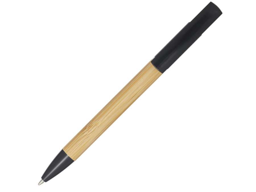 Бамбуковая шариковая ручка, которая также может служить подставкой для телефона. Кнопка и среднее кольцо изготовлены из переработанного пластика, наконечник — из латуни, а корпус — из бамбука, полученного из ответственных источников. Цвет чернил: черный. Длина непрерывной линии: 1000 метров. Размер пера: 1, 0 мм. FSC certified bamboo. FSC Mix Credit N5 CU-COC-877277.