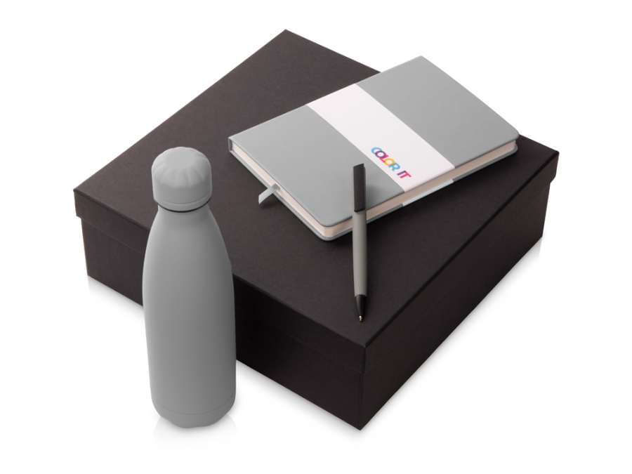 Подарочный набор c блокнотом C2, ручкой и термобутылкой, серый