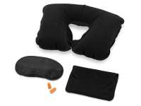Замечательный дорожный набор включает в себя надувную подушку, маску на глаза и беруши, все это упаковано в специальный чехол. Приятная на ощупь поверхность набора обеспечит комфортный сон в любой обстановке. Комплектность: маска на глаза 18, 5 х 8 см, подушка под голову 41 х 26, 5 см, беруши, дорожный чехол 12 х 17, 5 см