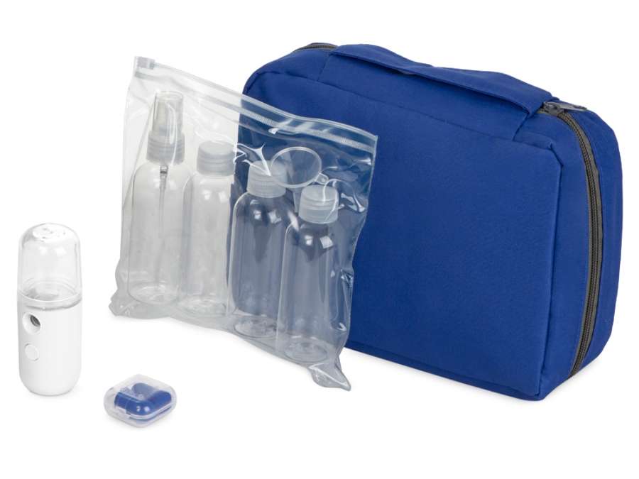 | Материал: | несессер- полиэстер, увлажнитель- пластик, емкости- ПВХ, беруши- полиуретан |