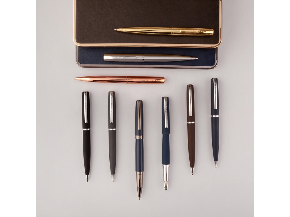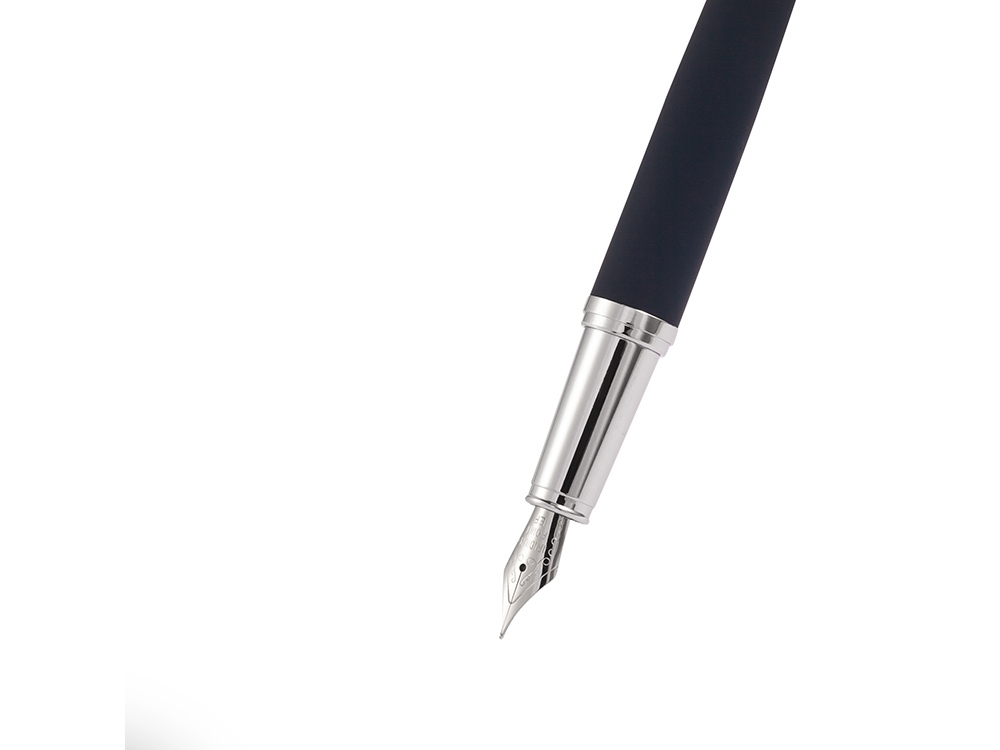 Cтильная перьевая ручка Sienna от Bruno Visconti синего цвета с контрастирующими элементами в цвет серебра. Благодаря покрытию Soft Touch пальцы не скользят по корпусу ручки, письмо комфортное и легкое. Ручка оснащена высококачественным механизмом подачи чернил, благодаря которому линия остается однородной и аккуратной. Чернила не токсичны, на основе водорастворимого красителя, не забивают фидер. Перьевой наконечник выполнен из иридиума и дополнен орнаментом.