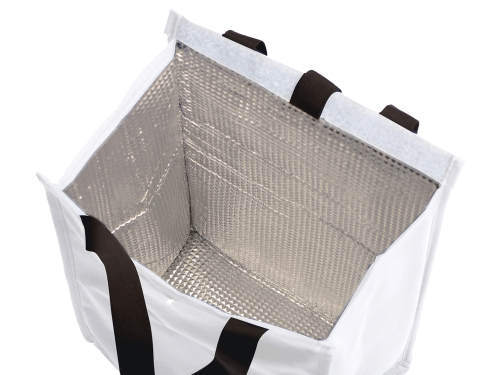 Вместительная сумка-холодильник, в том числе подходящая для винных бутылок. Внутренняя подкладка из пены толщиной 2 мм. Закрывается на плотную липучку. Складывается и застегивается на кнопку. Удобные прочные ручки для переноски.