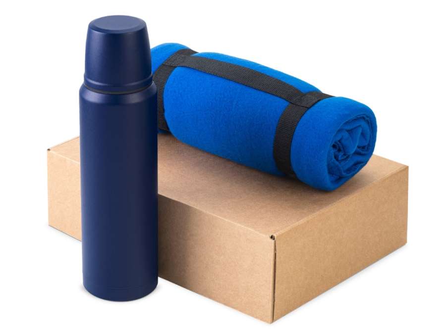 • набор упакован в коробку, которую также можно брендировать. Комплектность: плед, термос 1000 мл, коробка