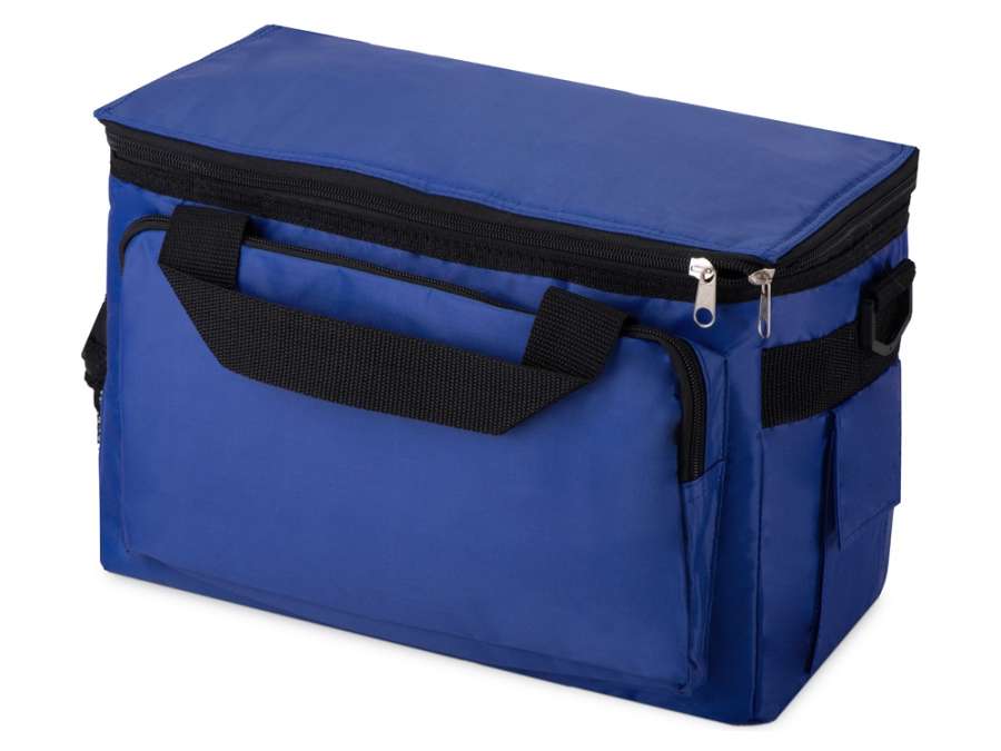 Вместительная сумка-холодильник (объем – 13 л.) Камайоре прекрасно подойдет не только для индивидуальных пикников, но даже и для доставки горячих продуктов (пиццы, например). С боков 2 кармана – один сетчатый с регулируемой затяжкой для бутылки. Другой для приборов, салфеток или других мелочей закрывается на липучку. Наружный слой сделан из полиэстера, на него может быть нанесена персонализация: имя владельца или логотип компании.