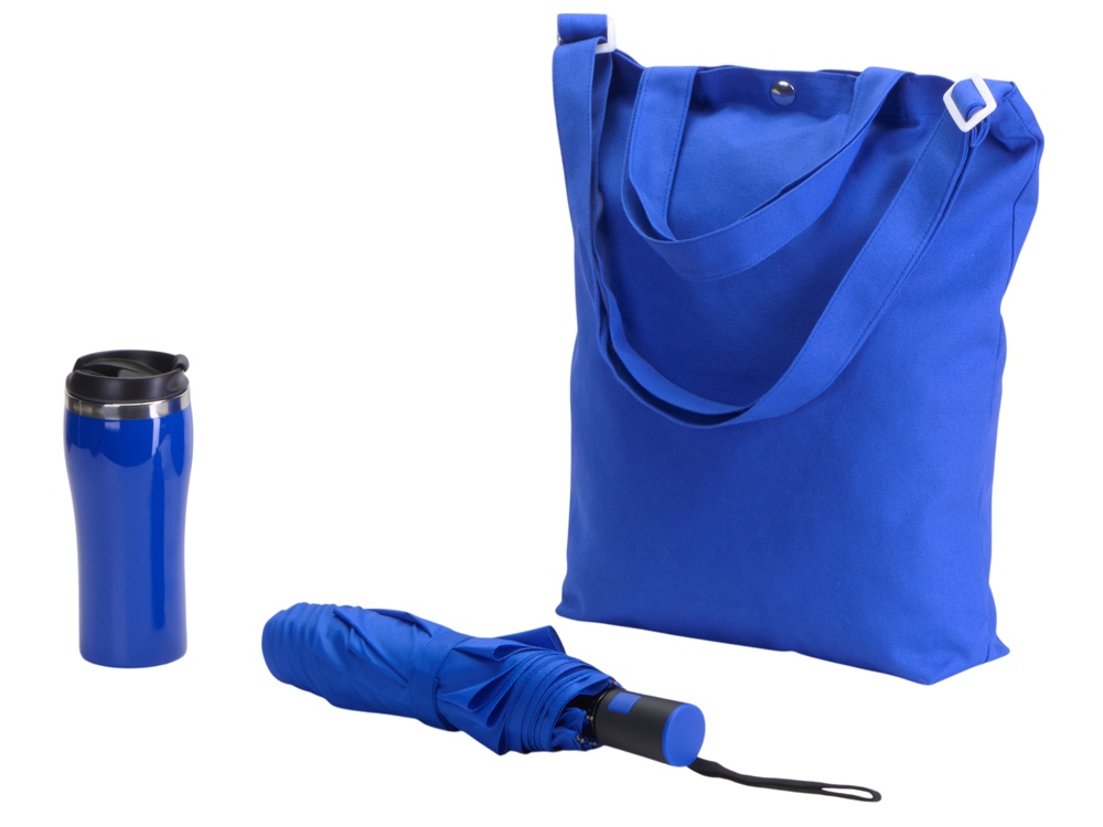 | Материал: | сумка- 100% хлопок, термокружка- полипропилен снаружи, нержавеющая сталь внутри, зонт- эпонж |