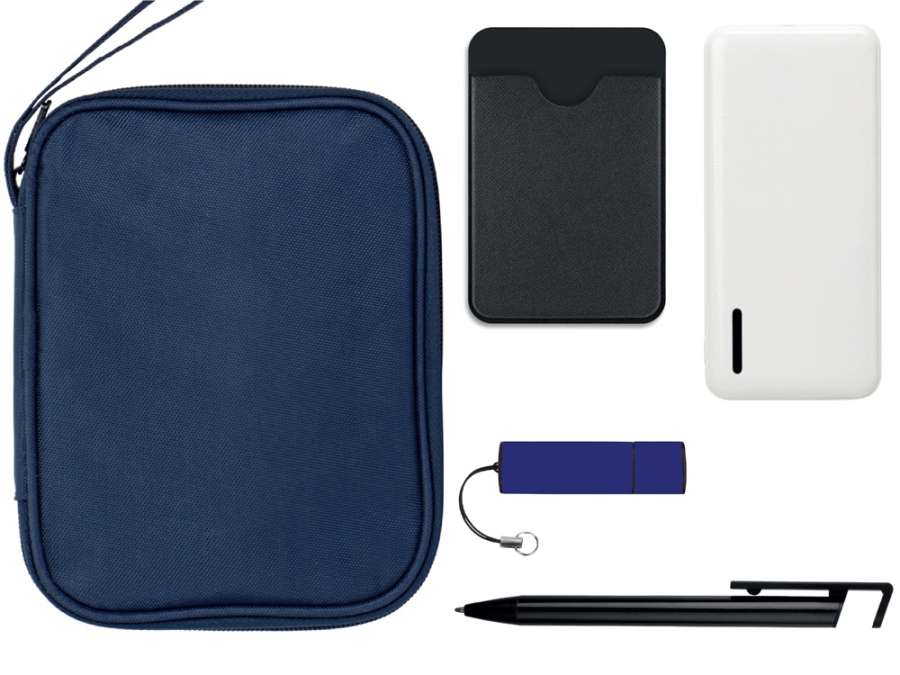 Подарочный набор с флешкой, повербанком и ручкой, темно-синий