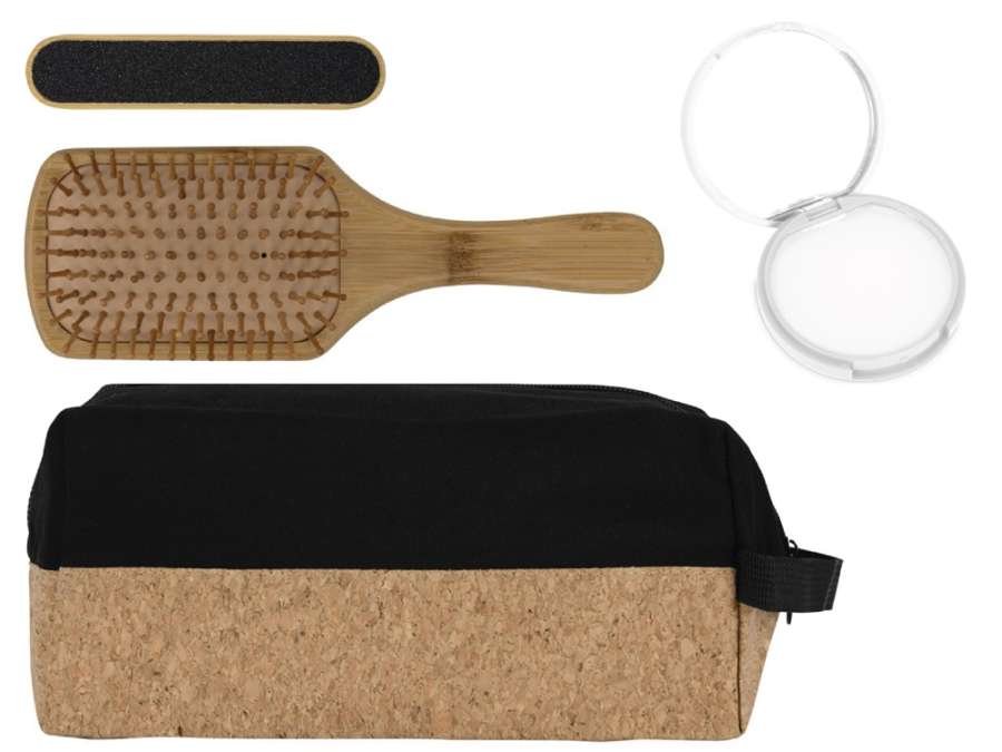 | Материал: | расческа, пилка для ногтей - бамбук, бальзам для губ -пластик, несессер - хлопок, пробка, ручка - полиэстер |