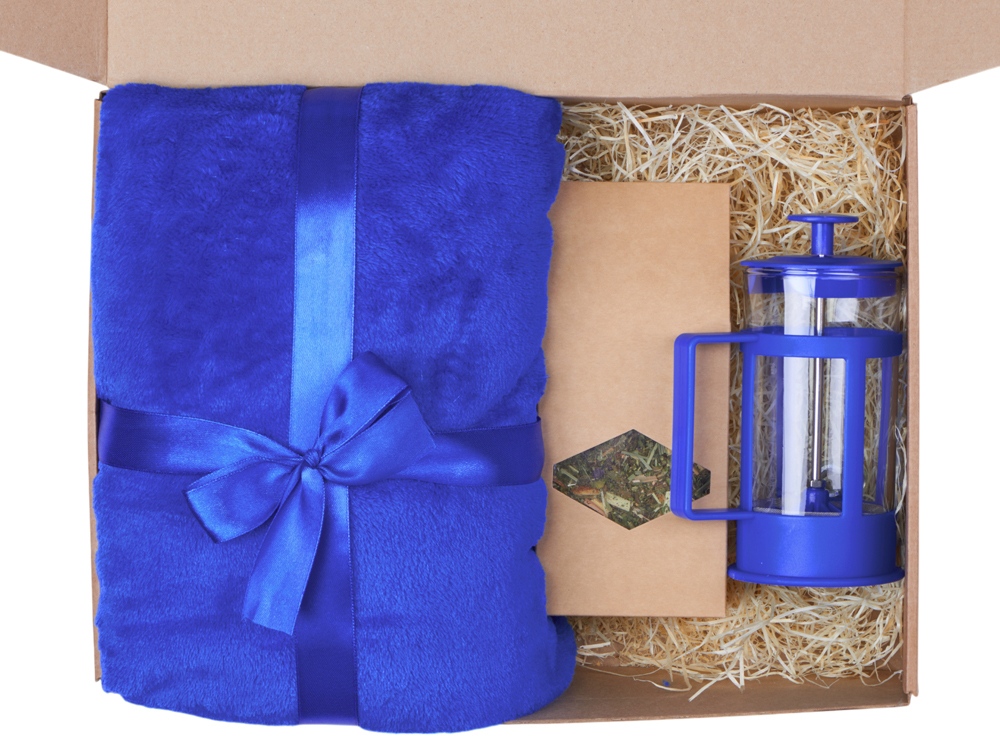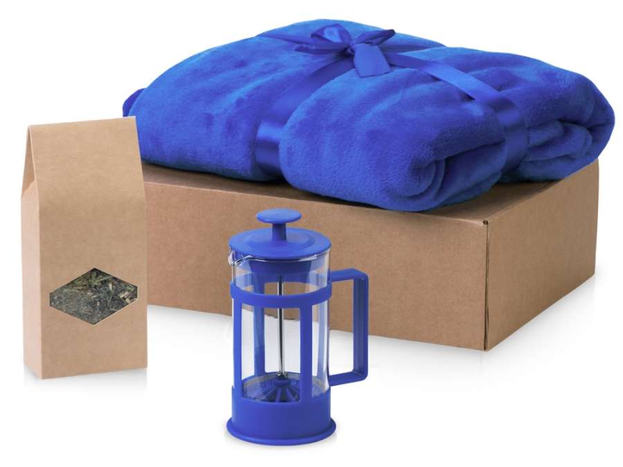 Набор продуман до мелочей. Когда зимним вечером подходит время чая, хочет завернуться в мягкий и теплый плед и наслаждаться любимым напитком, который можно заварить во френч прессе, входящем в комплект. Набор упакован в стильную крафтовую коробку. Комплектность: плед, френч-пресс 350 мл, чай 40 г