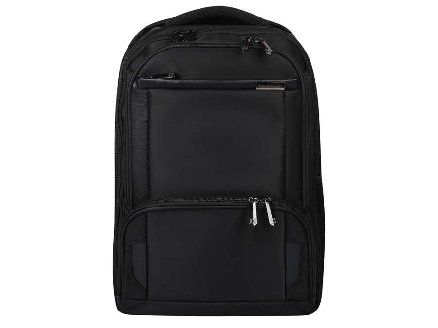 Рюкзак для ноутбука с двумя наружными фронтальными карманами на молнии. Одно отделение для ноутбука. Второе широкое отделение можно использовать для одежды при поездках в командировку. Сбоку сетчатый карман для зонта или бутылки. Сетчатая спинка. Лямки регулируются по длине.