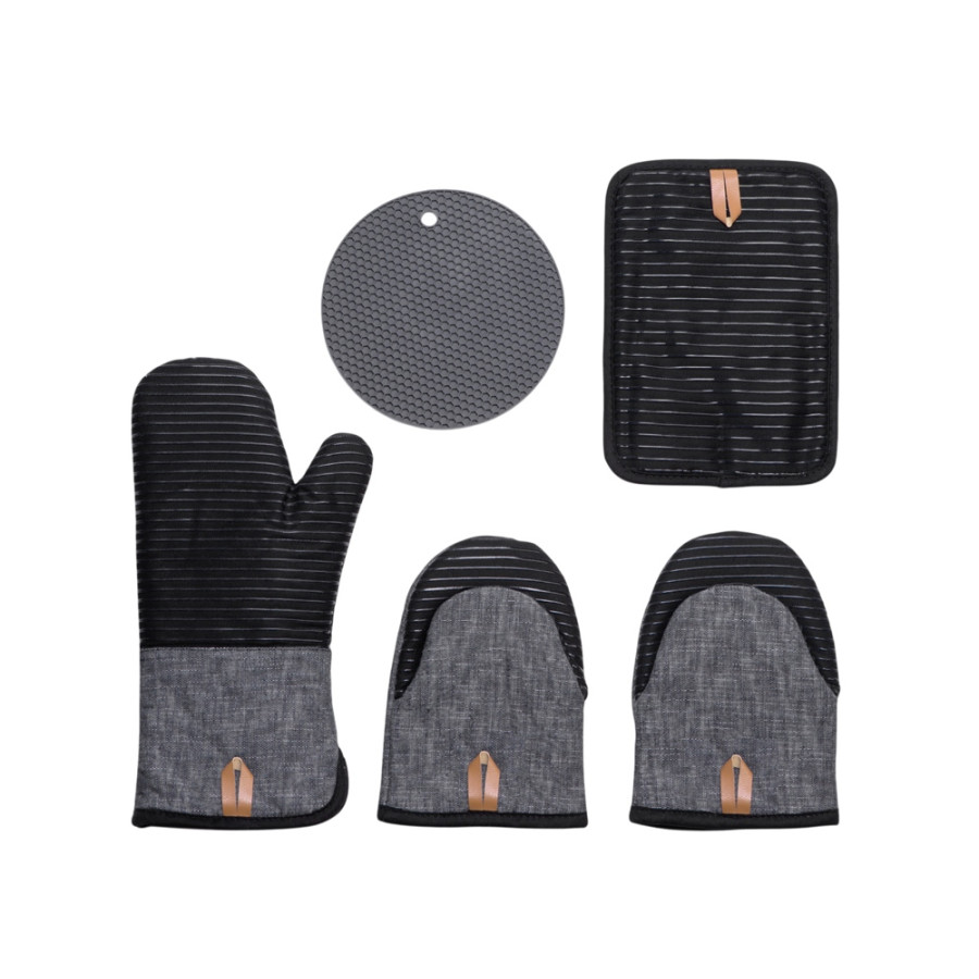 Этот набор обеспечит вам максимальную защиту и удобство при работе на кухне. Все предметы изготовлены из качественных материалов, легко моются и прослужат вам долгие годы. Комплектность: прихватка рукавица, прихватка мини - 2шт, прихватка держатель для блюд, силиконовая подставка круглая