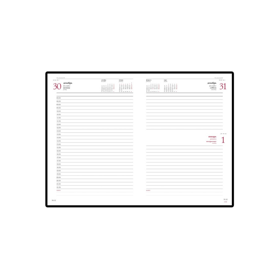 Благородство и статусность придают ежедневнику отстрочка по периметру в тон, скругленные углы, закладка-ляссе бордового цвета, золотой срез.