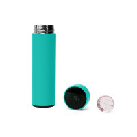 Термос из нержавеющей стали, покрытый цветным soft touch, с крышкой, в которой встроен термометр и LED дисплей, показывающий температуру внутри термоса. Объем: 500 мл. Упаковка: каждый термос в крафт коробке. Комплектность: термос, датчик температуры в крышке, ситечко, упаковка.