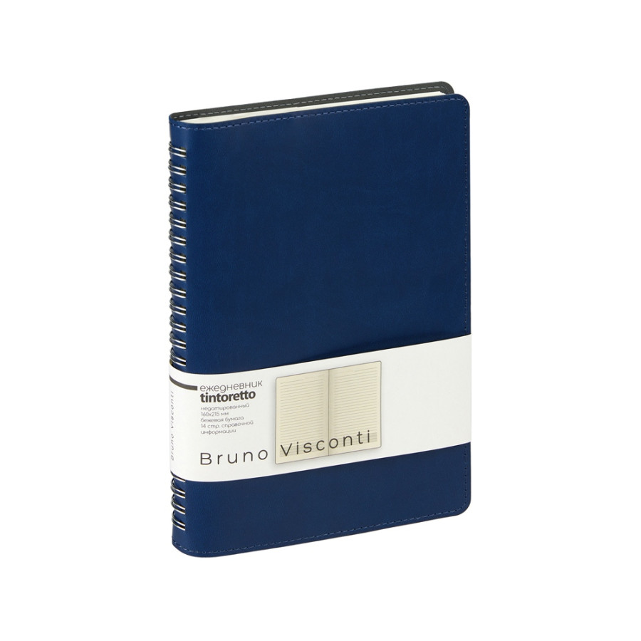 Недатированный ежедневник формата А5 Tintoretto ТМ Bruno Visconti - практичное решение для тех, кто любит ежедневники на пружине. Полускрытый гребень позволяет держать ежедневник открытым на столе и комфортно вести записи. 272 страницы блока произведены из превосходной бежевой бумаги плотностью 70 г/кв. м, а неброская линовка каждой страницы позволяет не отвлекаться на лишние детали. Гибкую обложку из искусственной кожи украшает отстрочка декоративной нитью по краю.