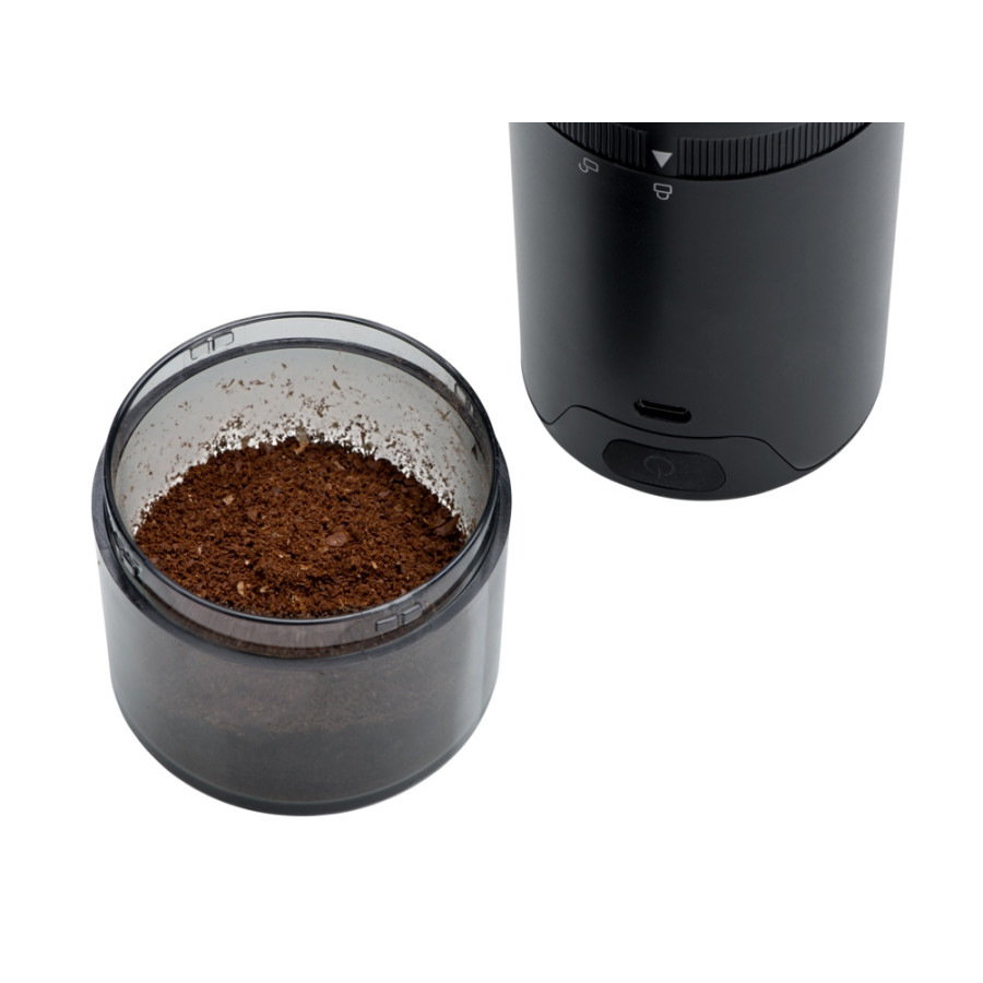 Эта портативная кофемолка — идеальный выбор для тех, кто ценит свежемолотый кофе и мобильность. Комплектность: кофемашина, щеточка для чистки, зарядный кабель