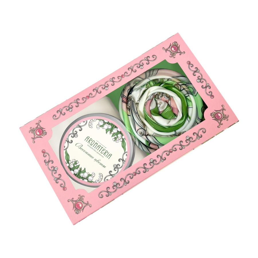 Набор: платок Ландыши и свеча Весенние цветы