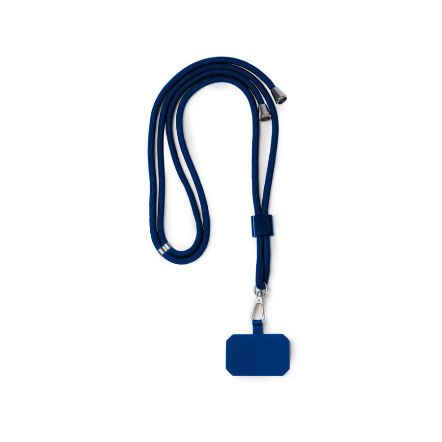 Держатель для мобильного телефона на шнурке из переработанного полиэстера RPET. Регулируемый ремешок, в комплект входит карабин.