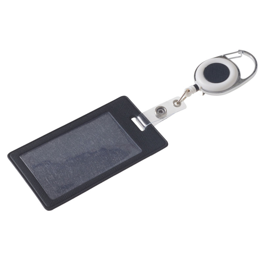 Прочный чехол для пропуска из экокожи с ретрактором. Ретрактор можно удобно закрепить на одежде, за ремень или карман брюк, например. При этом, когда пропуск нужно приложить к электронному считывающему устройству, достаточно просто слегка потянуть и будет получена необходимая длина.