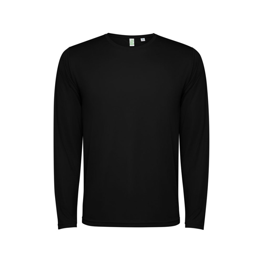 Детский лонгслив из технологичного полотна. Отстрочки в тон. Спинка с удлинением. Боковые швы со смещением вперед.