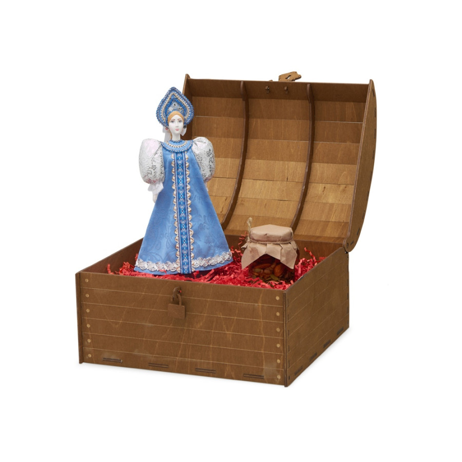 4. Деревянный сундук с изящным замочком превращает вручение подарка в особый ритуал. Дополнительное брендирование шильдом спектрум делает презент эксклюзивным и памятным.
