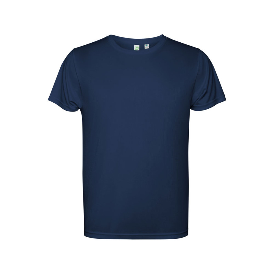 Детская футболка с коротким рукавом из технологичного полотна. Отстрочки в тон. Спинка с удлинением. Боковые швы со смещением вперед.