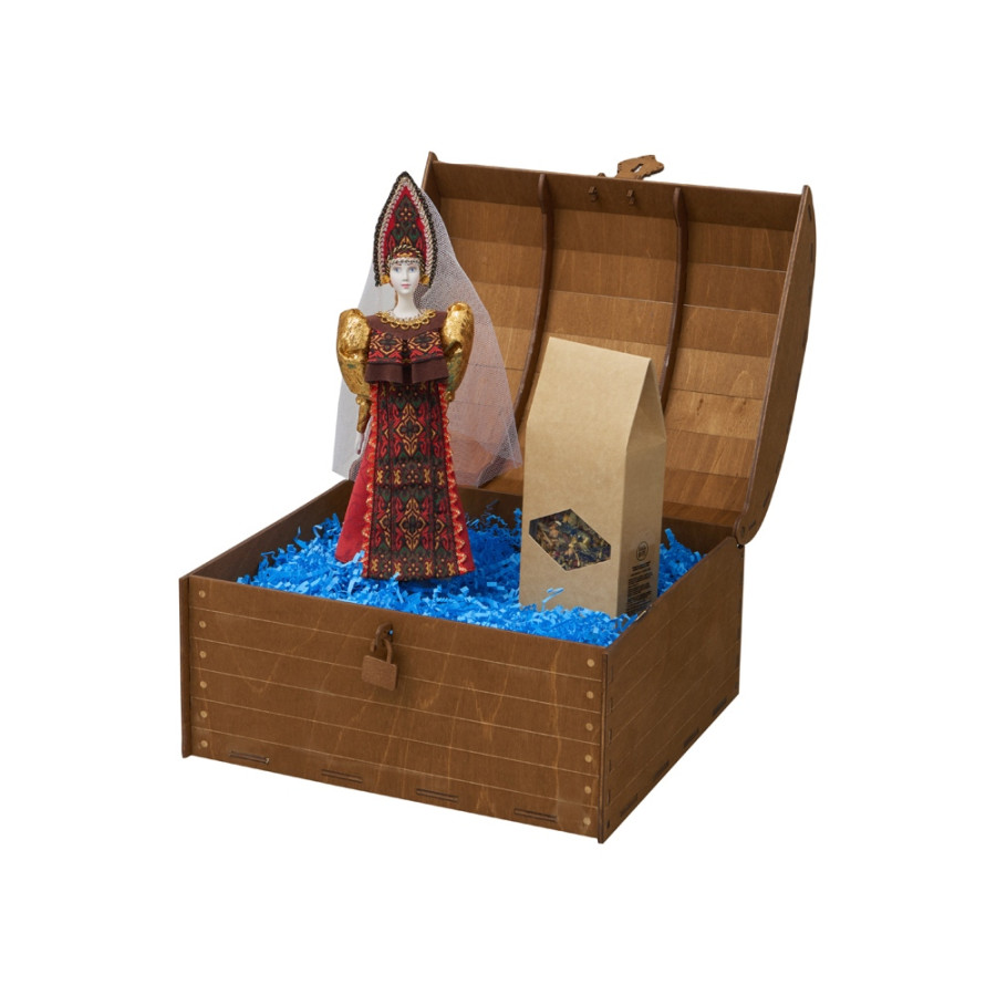 Деревянный сундучок с замочком превращает набор в драгоценный ларец. Возможность нанесения именной таблички добавляет презенту индивидуальности, делая его по-настоящему памятным подарком. Комплектность: кукла фарфоровая 25±3 см, чай фруктовый, 70 г.