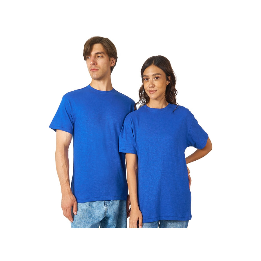 Полотно футболки имеет необычную структуру - с протяжками, но при этом гладкую поверхность, что обеспечивает идеальную поверхность для нанесения: прямая печать, трафаретная или термотрансфер прекрасно ложатся на такое полотно. Декоративная отстрочка по низу рукавов и изделия, а также отстрочка по горловине позволяют футболке дольше сохранять форму.
