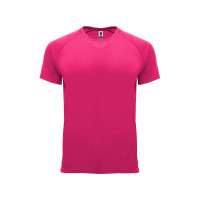 Спортивная футболка с коротким рукавом реглан. Круглый вырез горловины с отделкой плоским швом. Рукав сложного кроя для обеспечения дополнительного удобства при занятиях спортом. Отделка плоским швом с застилом по пройме и рукавам.
