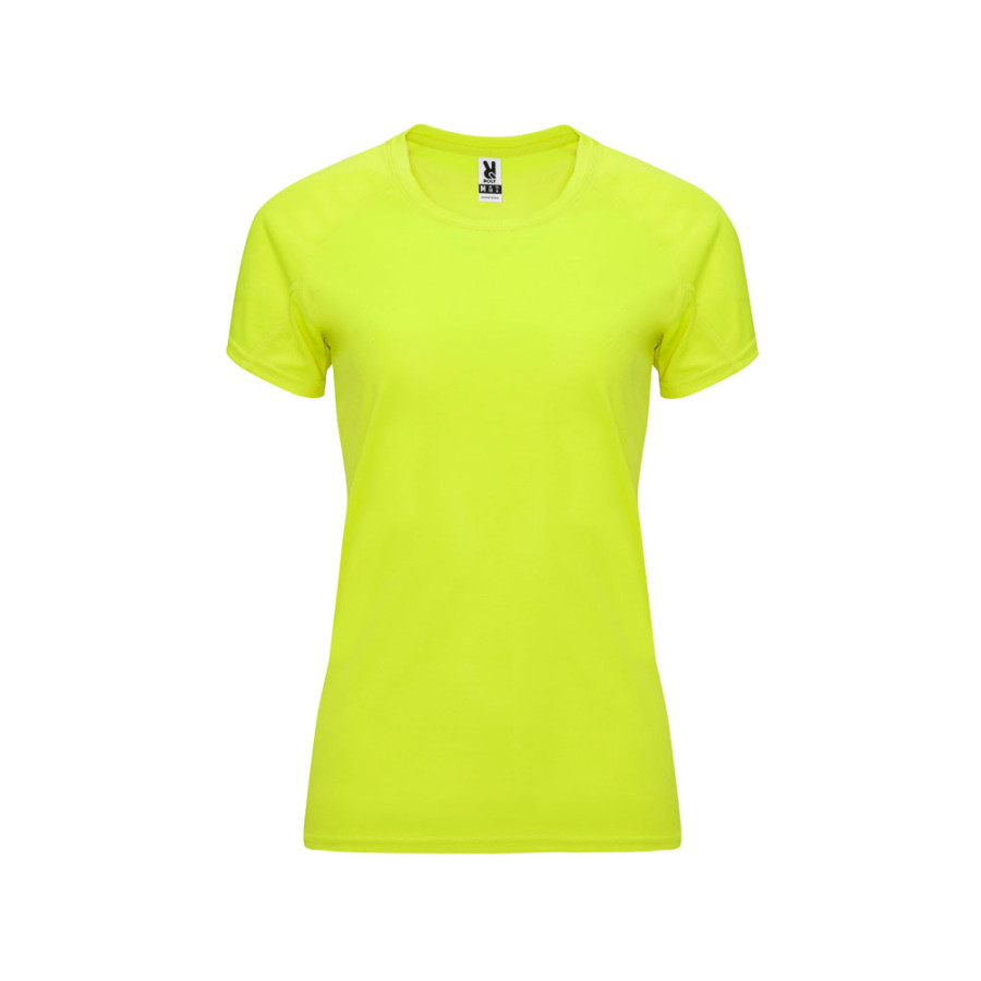 Спортивная футболка с коротким рукавом реглан для женщин. Круглый вырез горловины с отделкой плоским швом. Рукав сложного кроя для обеспечения дополнительного удобства при занятиях спортом. Отделка плоским швом с застилом по пройме и рукавам.
