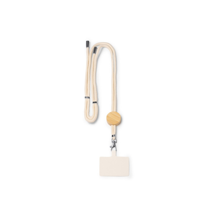 Шнурок-держатель для мобильного телефона из хлопка с бамбуковыми вставками и системой регулировки.