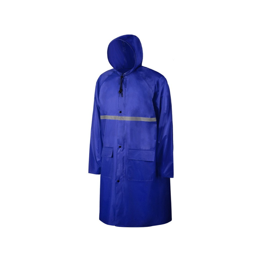 Светоотражающая тесьма на груди и спине делает человека в плаще заметным даже в темное время суток. Вместительные накладные карманы защищены сверху клапаном.