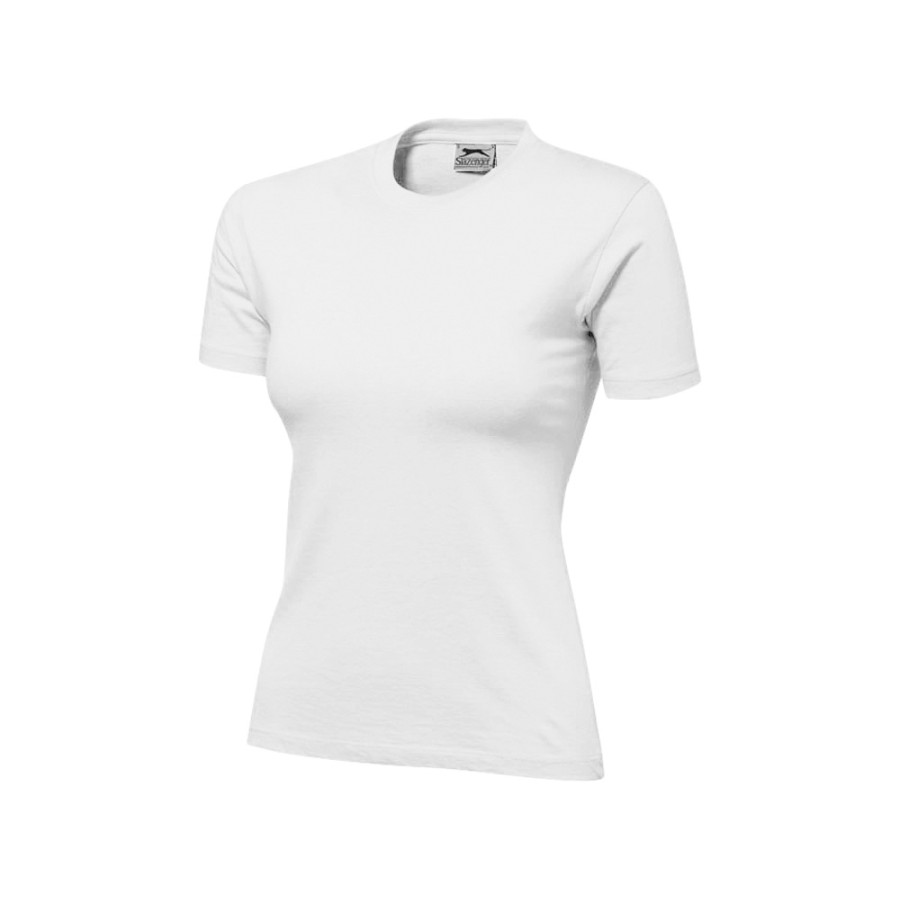Женская футболка с короткими рукавами Ace. Модель стандартной посадки. Женская и детская модели - со швами по бокам. Резинка с эластаном и двойной строчкой на воротнике. Лента от плеча к плечу. Однослойная джерси, 100% хлопок. 150 г/м².